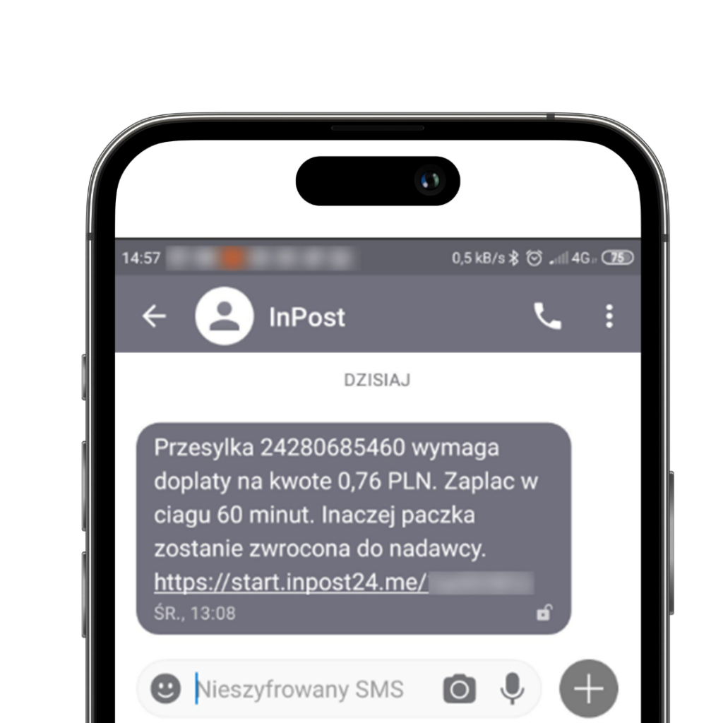 - Fałszywe wiadomość SMS z wezwaniem do szybkiego uregulowania płatności. Taka wiadomość może dotyczyć m.in. nieopłaconej faktury, dopłaty do przesyłki kurierskiej, koniczności opłacenia zaległego podatku itp.)