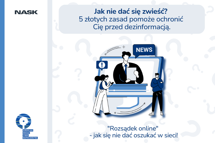 Tekst opracowany przez Dział Przeciwdziałania Dezinformacji NASK – w ramach kampanii Europejskiego Miesiąca Cyberbezpieczeństwa – „Rozsądek online – jak nie dać się oszukać w sieci!”. Wykaz wszystkich artykułów opublikowanych w ramach kampanii TUTAJ